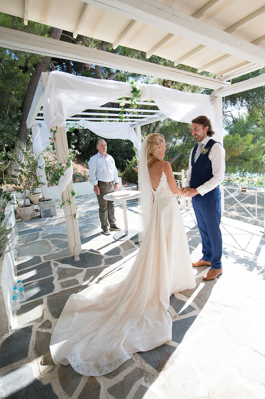 Kate and Mike’s wedding on Poros felt like the perfect continuation of a love story that had been quietly growing for years. They had been visiting the island for holidays time and time again, until it became a true second home—especially for Kate, who has always been completely in love with Poros. It was only natural that Mike chose this place for the proposal, asking her to marry him at the house her parents had bought on the island, a moment filled with emotion, sunshine, and that familiar Poros calm they both adore.